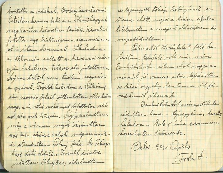 borította a vidéket. Bodrogkeresztúrnál letértem Szerencs felé és a Tokajihegyet megkerülve haladtam tovább. Keresztül futottam egy kisközségen - nemsokára el isértem Szerencset. Elhaladva az állomás mellett a Szerencsi Cukorgyár hatalmas telepe elé jutottam. Sajnos belől nem tudtam megnézni a gyárat. Tovább haladva a Rákóczy vár masszív falait pillantottam pillantottam meg, a vár zöld repkénnyel befuttatva állt egy szép park közepén. Végig szaladtam még a városon majd vásároltam egy kis ebédre valót magamnak és elindultam Tokaj felé. A Tokaji hegy déli oldalán Tarcalt érintve jutottam Tokajba, elhaladtam a legnagyobb tokaji kőbányának az üzeme előtt, majd a hídon átjutva letelepedtem az országút oldalában és megebédeltem. Rakamaztól királytelek felé haladtam, estefelé volt